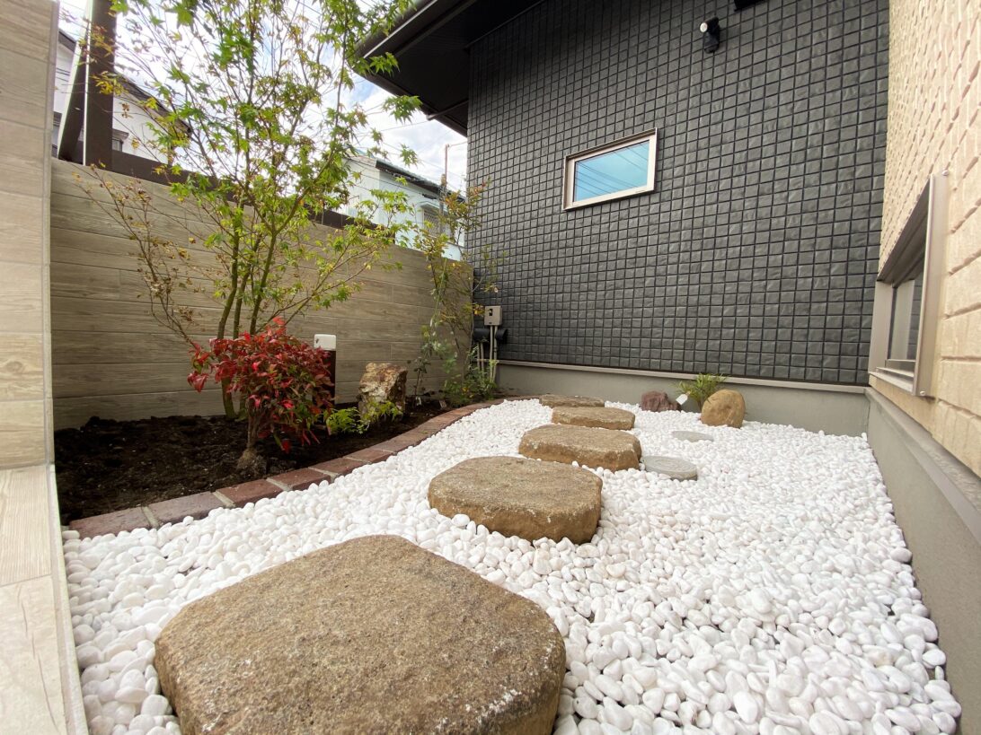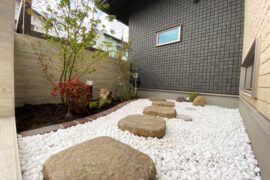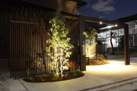 重厚感がありながらも、多めに取り入れたライトが温かみを醸し出しています。坪庭にしたのもGOOD。
