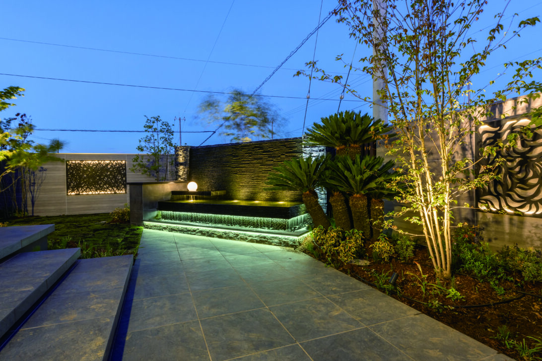 外観は建物とのバランスに見事に作り出し、ガーデンは昼夜を問わず家族で楽しみ過ごせる最高の空間に。