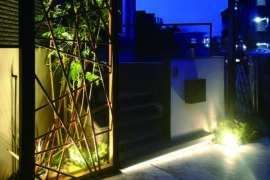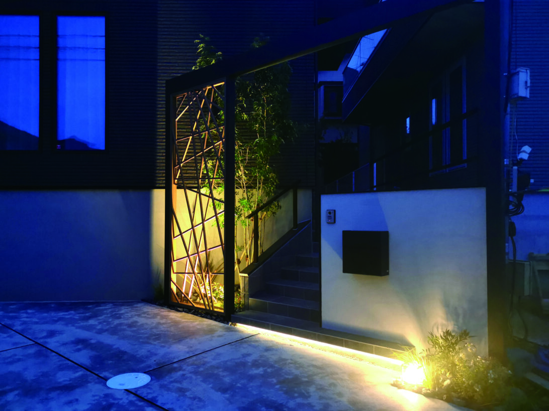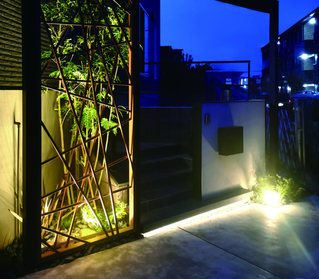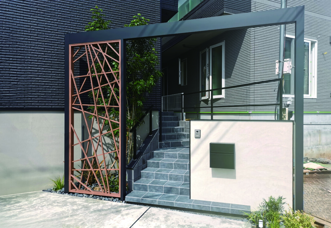 何といっても「抜け感のある個性的なアクセントパネル」。この存在感と植栽との調和が絶妙。
