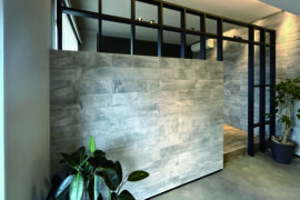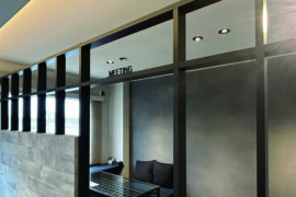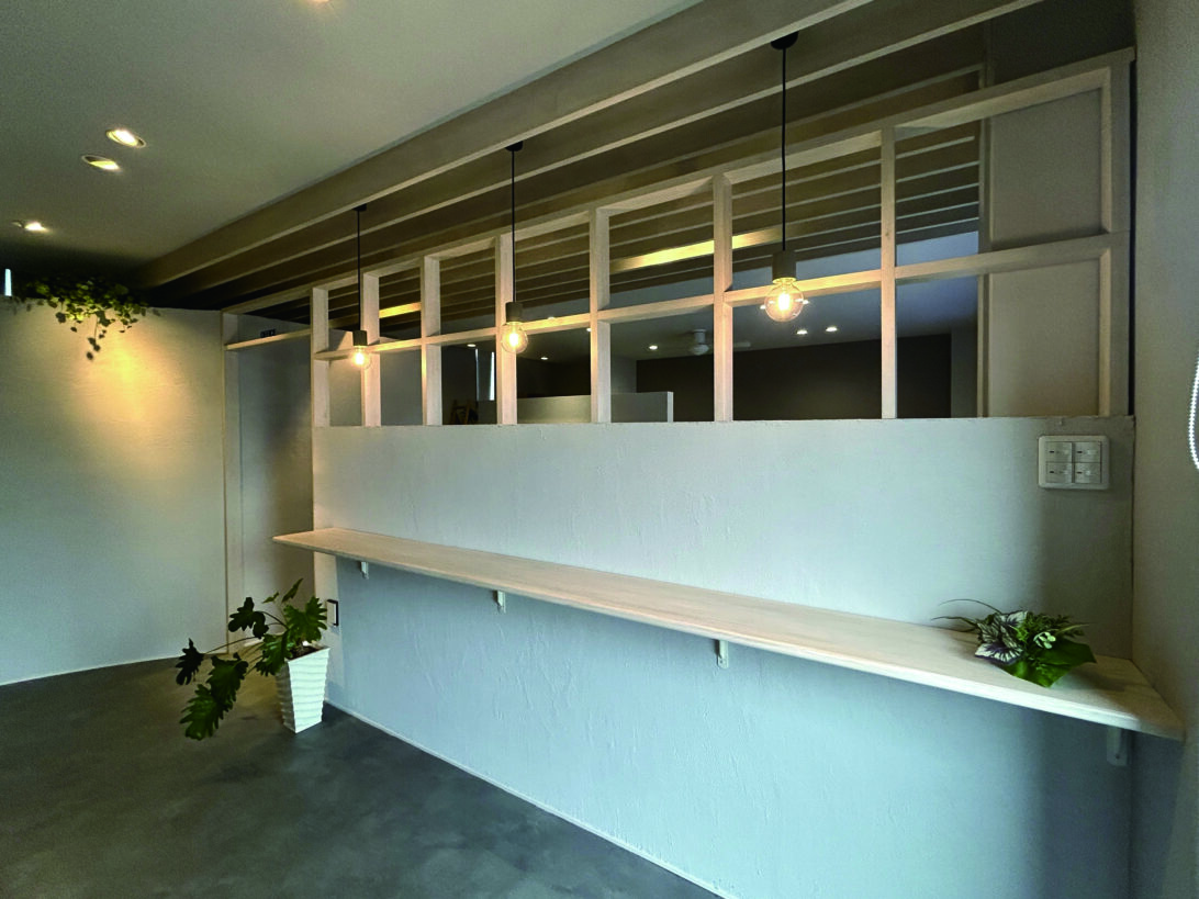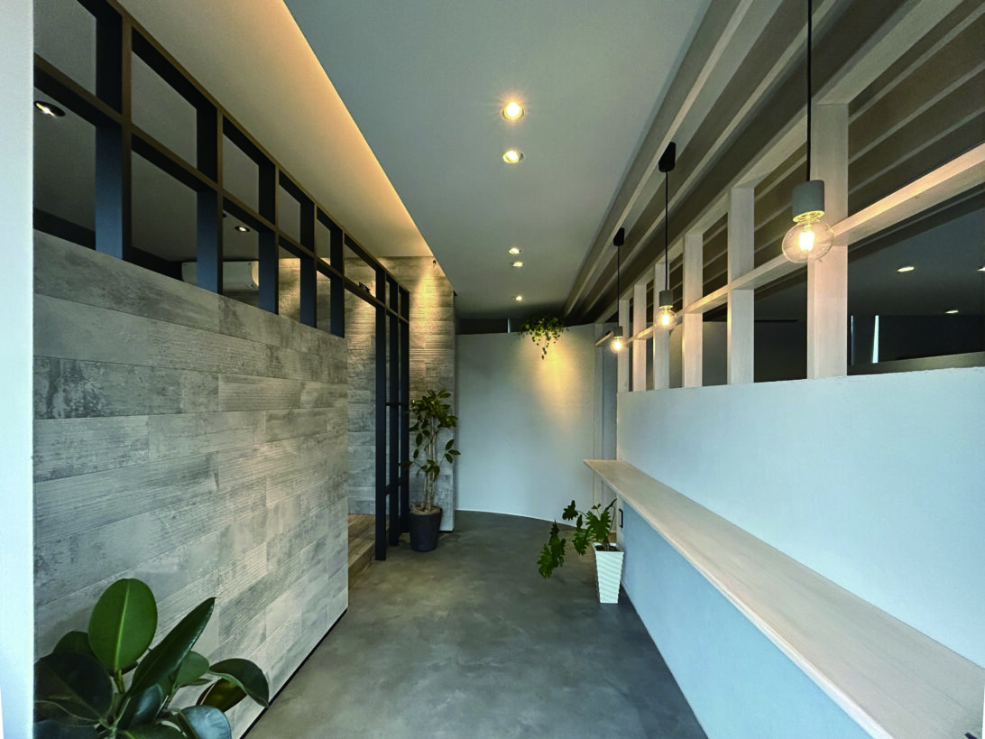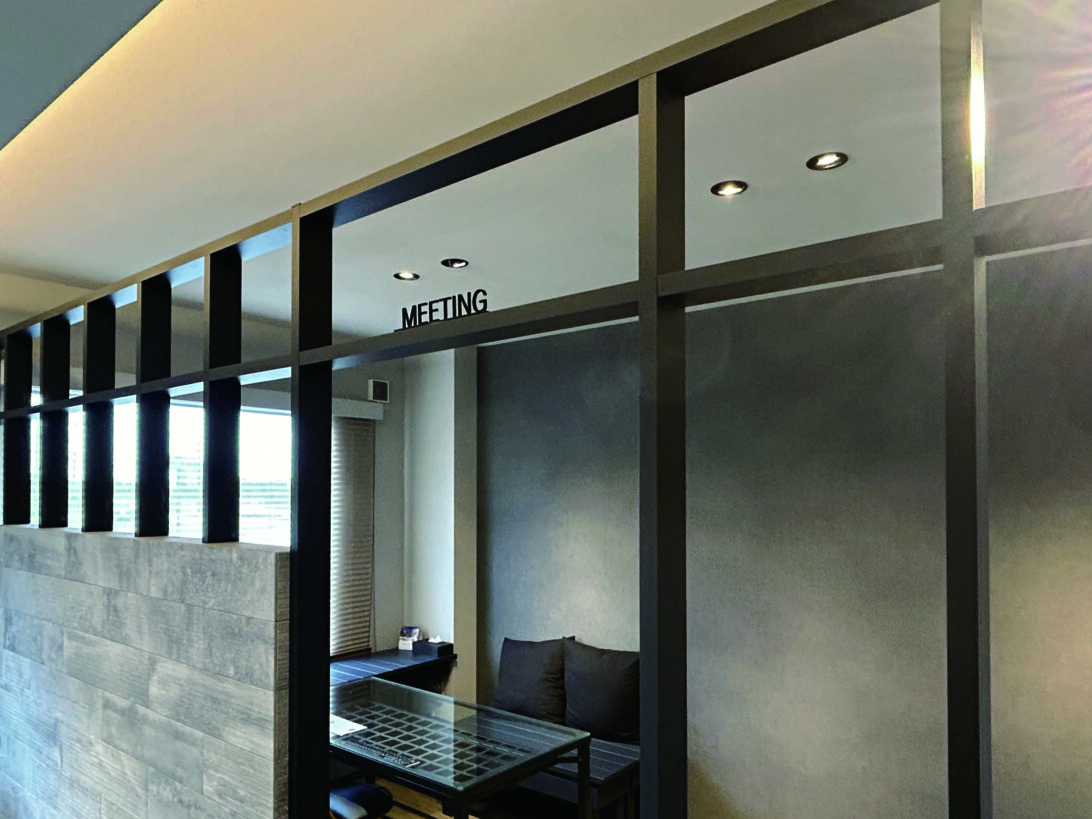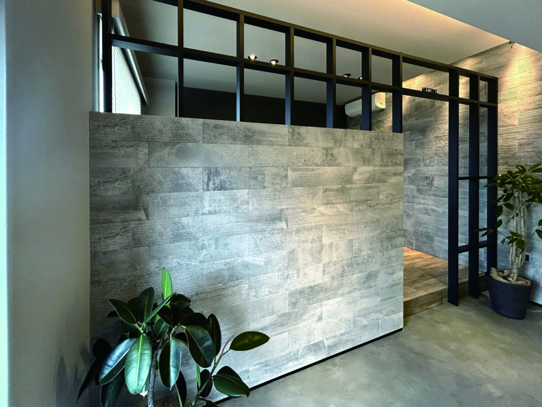 事務所と商談ルームを質感で上品に分けている。さり気ない室内での使用が新たなエリアへのチャレンジに繋がる。