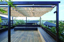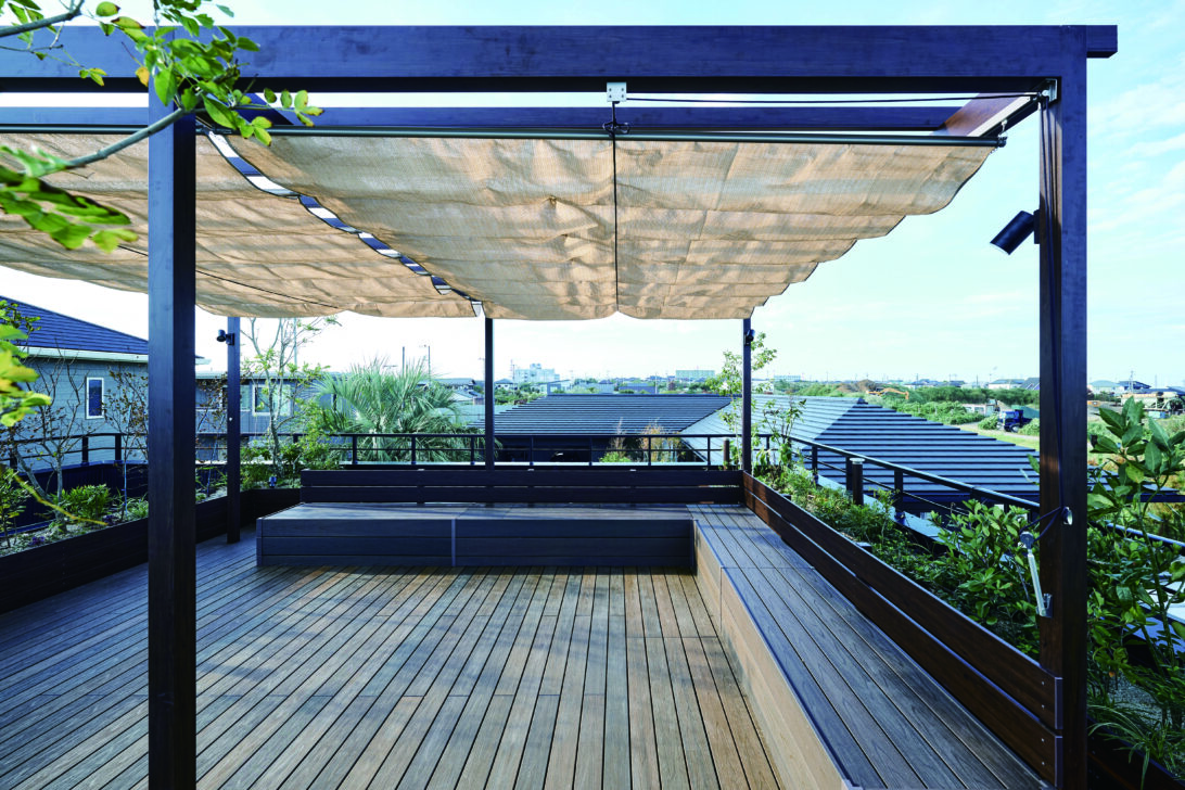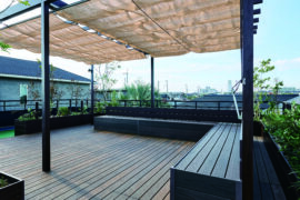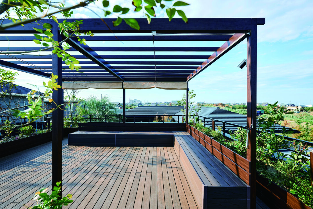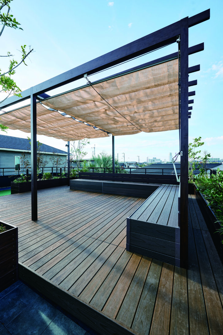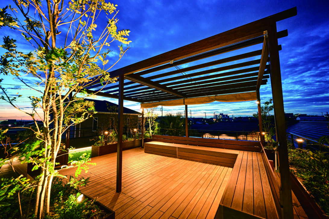 眺望の良い屋根上に、開放的でありながら植栽バランスの良さがプラスされて、居心地の良い空間を創り出している。昼も夜も安全に安心して楽しめる、もう一つのガーデンが誕生。